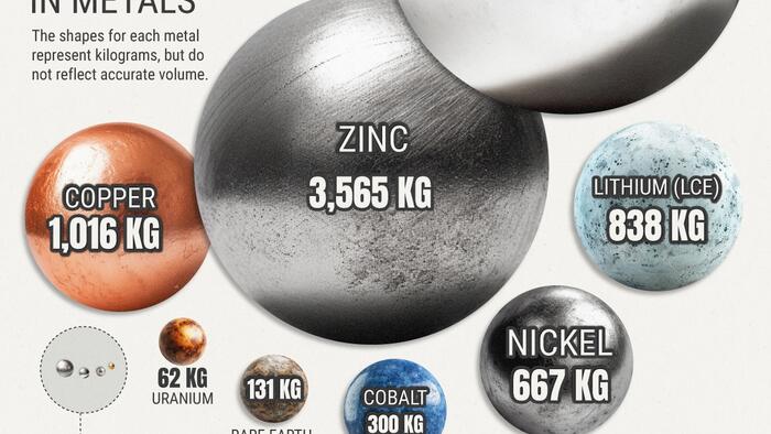 In between are metals like lithium and nickel, which are crucial to green technologies, batteries, and energy systems. Lithium, priced at nearly $12,000 per ton, yields 838 kg for $10,000, while nickel provides 667 kg.