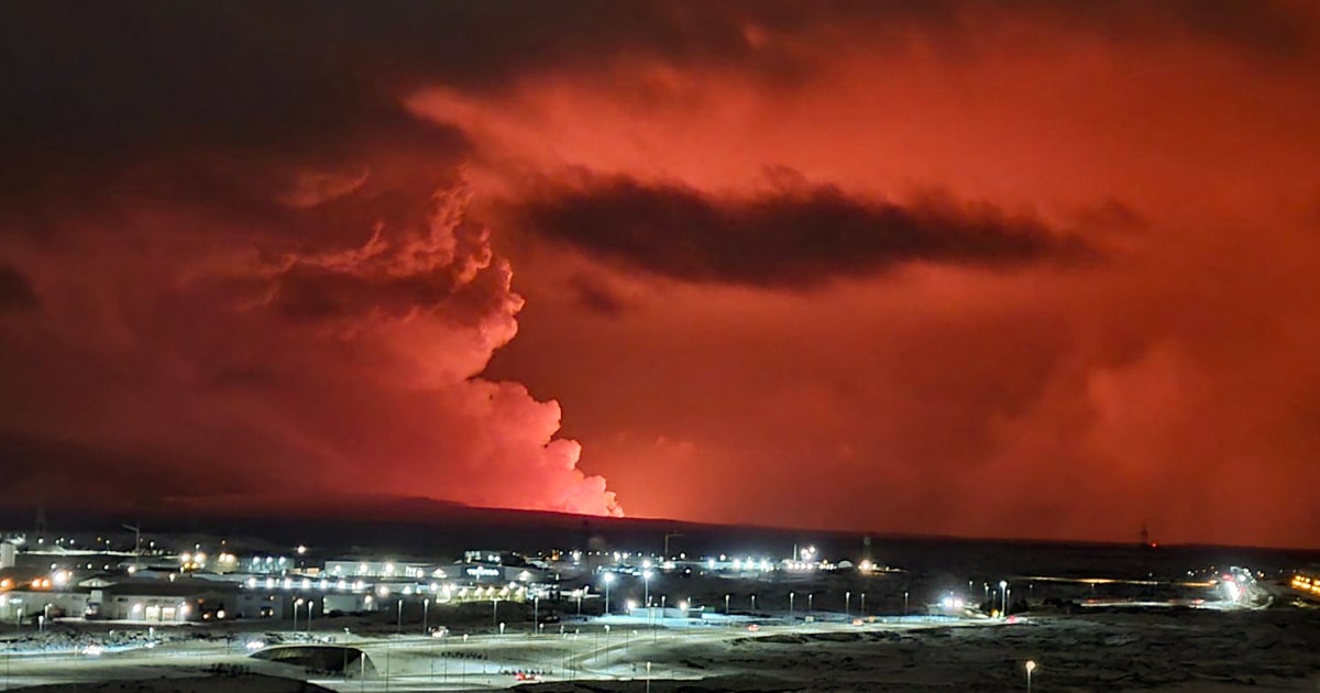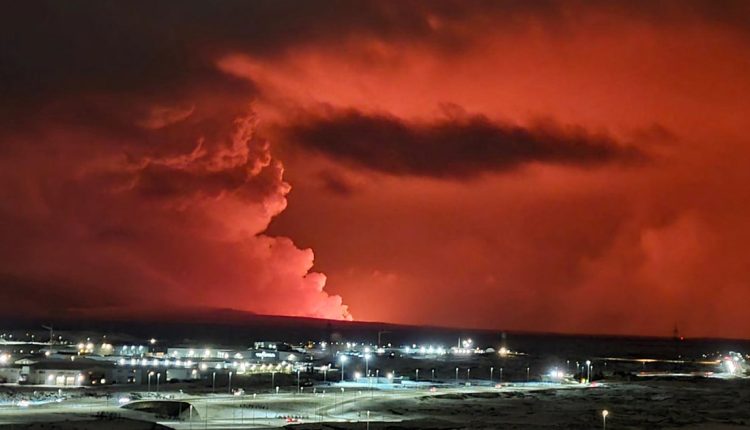 A volcanic eruption lit up the sky over Iceland’s Reykjanes peninsula Monday night, Iceland’s meteorological office said.