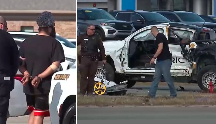 Citing multiple eyewitnesses, KXIN reported that the Freightliner semi-truck with a trailer ran a red light, striking a Chevrolet pickup truck and sending it careening across a median, where it struck another vehicle.