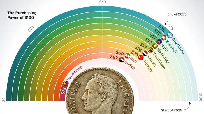 This graphic, created by Visual Capitalist’s Jenna Ross in partnership with Plasma, highlights countries with the highest inflation rates and what $100 could be worth by the end of 2025. It’s part of our Money 2.0 series, where we highlight how finance is evolving into its next era.