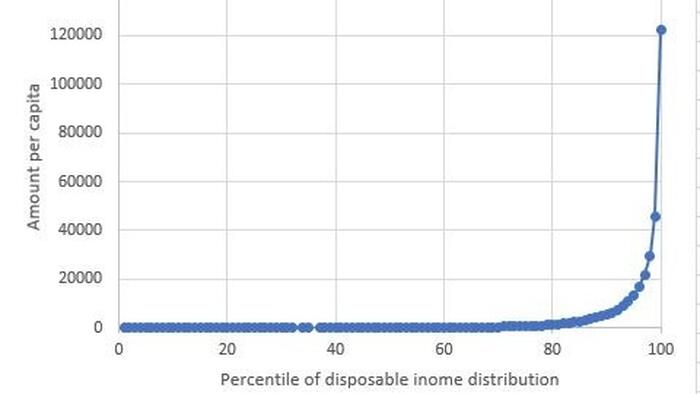 The earnings generated by ownership of capital go mostly to the very top of the wealth-power pyramid: the majority of income from capital flows to the top 0.25%, with the rest dribbling down to the top 5%.
