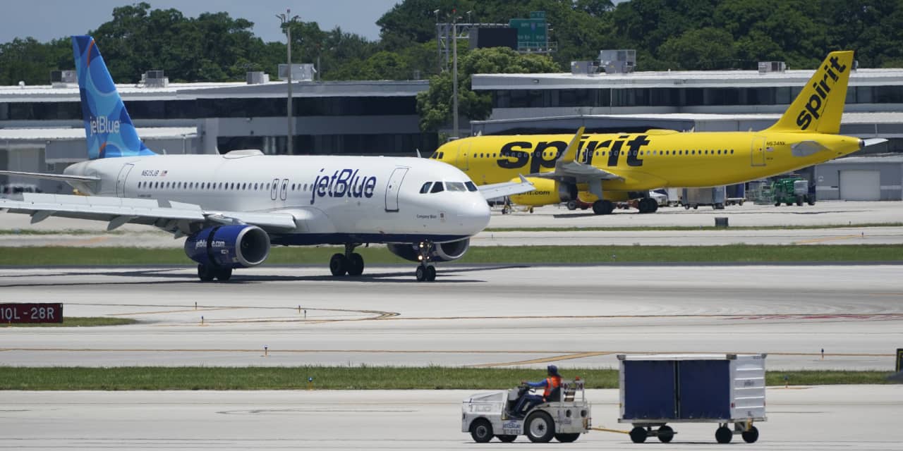 Shares of JetBlue fell 4% and Spirit dropped 12% in trading Tuesday.