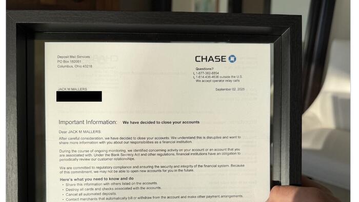 Mallers posted on X that “Last month, J.P. Morgan Chase threw me out of the bank,” noting how odd it was given that “My dad has been a private client there for 30+ years.” When he asked why, the bank told him only: “We aren’t allowed to tell you.”