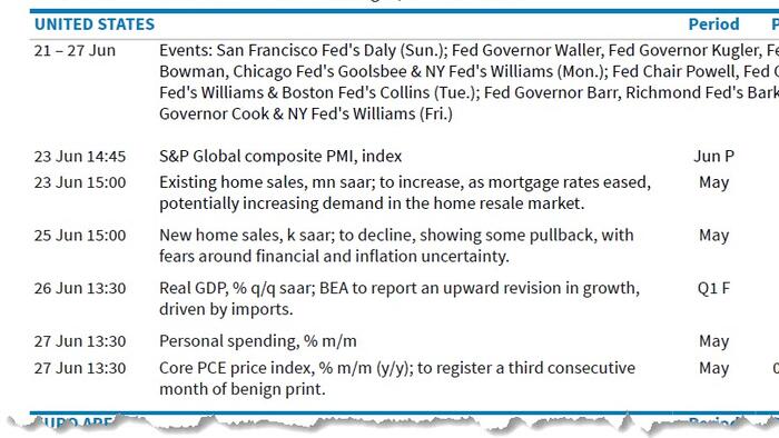 - Other: NATO summit through June 25, China’s NPC Standing Committee meeting through June 27