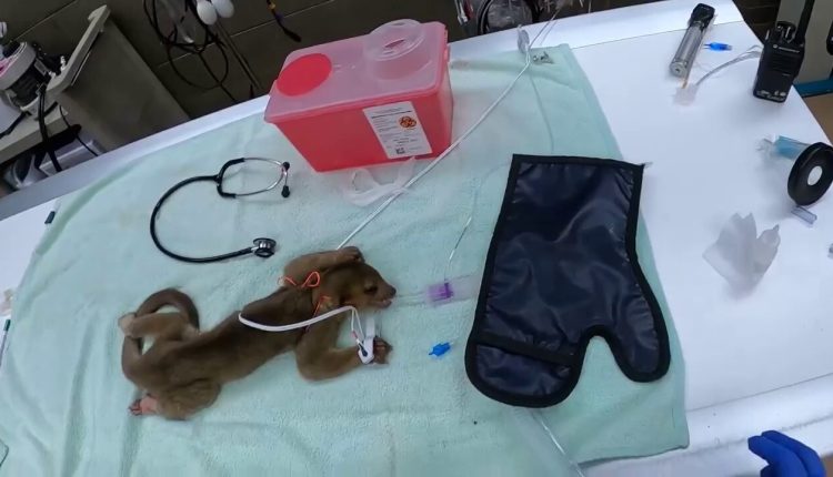 Head Veterinarian Dr. Karen said the young kinkajou is in fair health overall but is very thin, weighing only 2½ pounds. He has a good appetite, and staff is feeding him a full and healthy diet, the zoo said in the post.