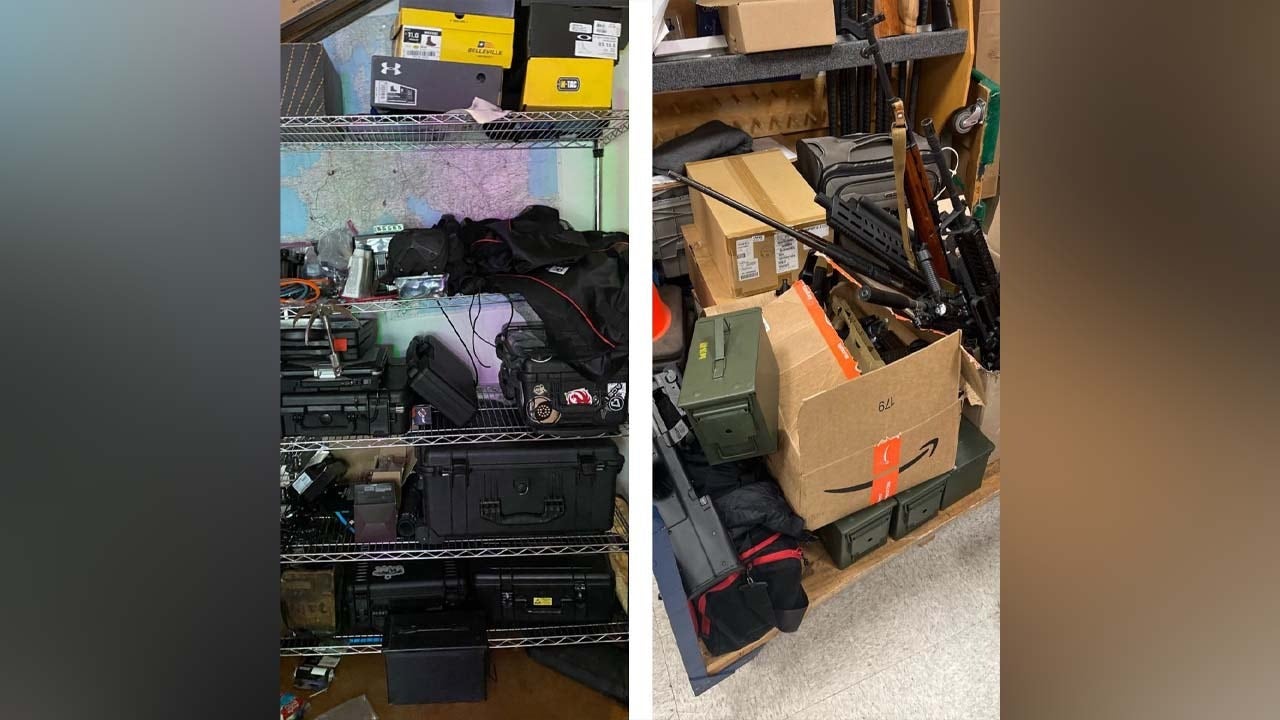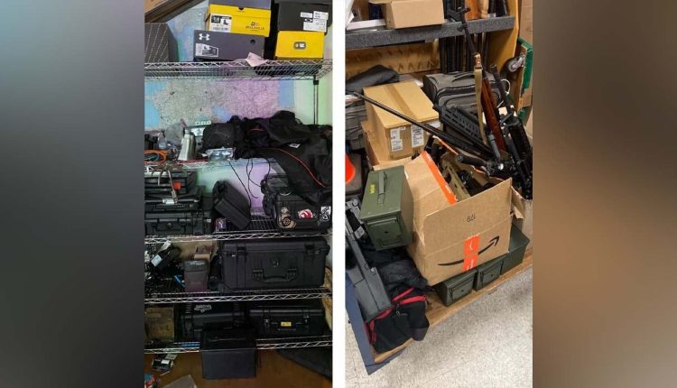 A trove of weaponry and tactical equipment, including manufactured “ghost guns” and parts, a ghillie suit, and tactical armor were recovered from the apartment.