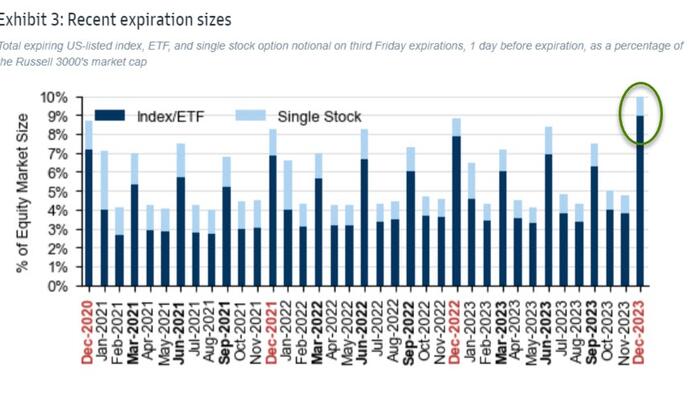 Options expiring today represent a notional value that is equal to 10% of the Russell 3000 market capitalization. The largest expiration on record.