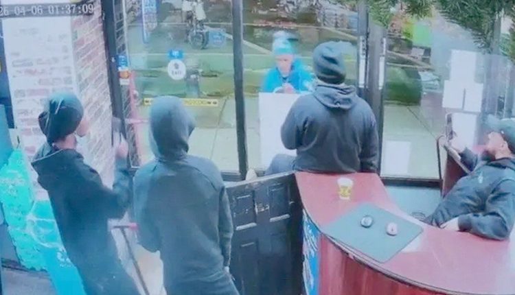 Surveillance video captured the man wielding a 13-inch knife, yelling, pressing against the store’s glass, police said.