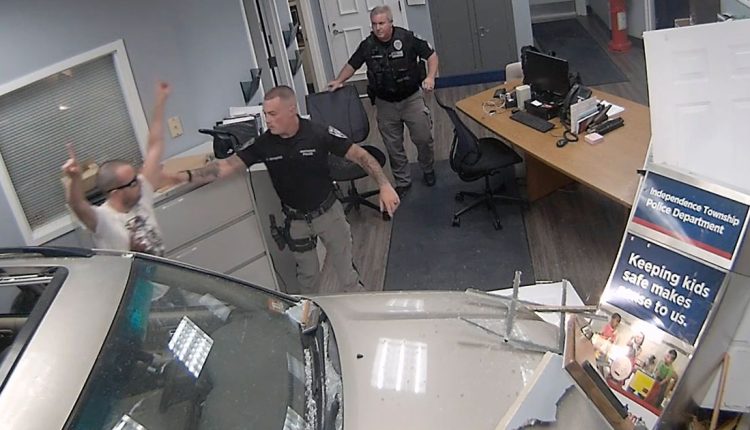 That crash happened just minutes after Hargreaves had driven into the garage door of a home in Liberty Township, an act prosecutors said was intended to harass the homeowner, who is known to Hargreaves. He then drove to the Independence police station because it was closest to the home, prosecutors said.