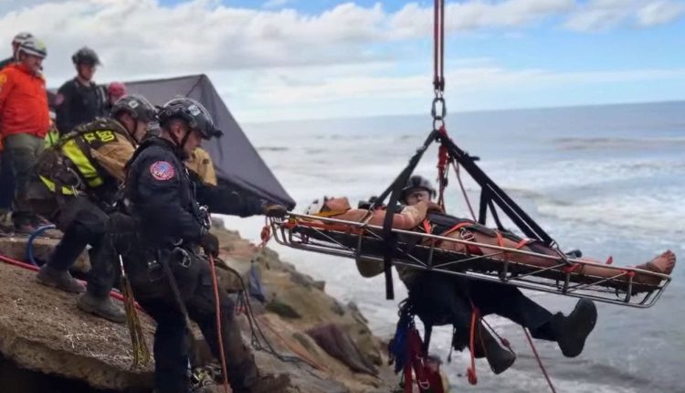 A man who got trapped in a crevasse on a rocky San Diego cliff for days was plucked to safety by crews Friday morning during a dramatic rescue.