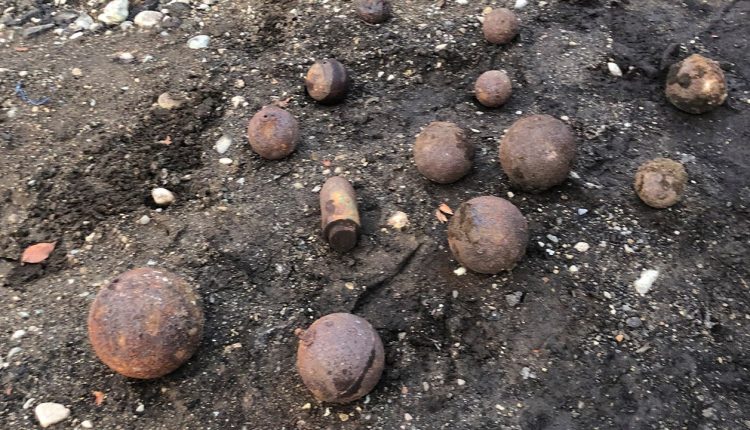 Bomb techs conducted visual inspections and interviews at the scene. A heavy equipment operator was able to dislodge several more cannonballs from a pipe in the trench. Officials inspected the surrounding area for other possible ordnance but found none.