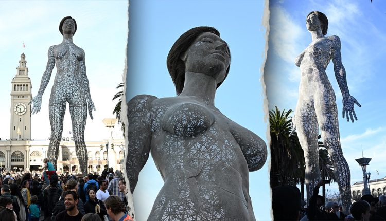 A 45-foot statue of a nude woman is the newest — and tallest — resident of San Francisco’s Embarcadero Plaza.