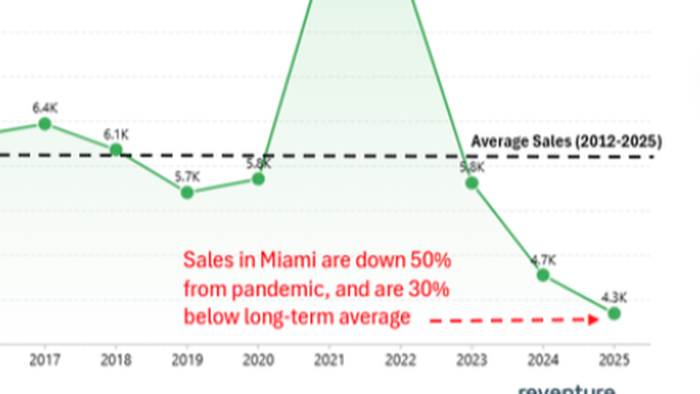 Nick Gerli, CEO and Founder of real estate analytics firm Reventure Consulting, has issued another troubling update on Florida’s housing market—this time sounding the alarm about a collapse in demand across the Miami metro area. He described the plunge in sales as “breathtaking.”