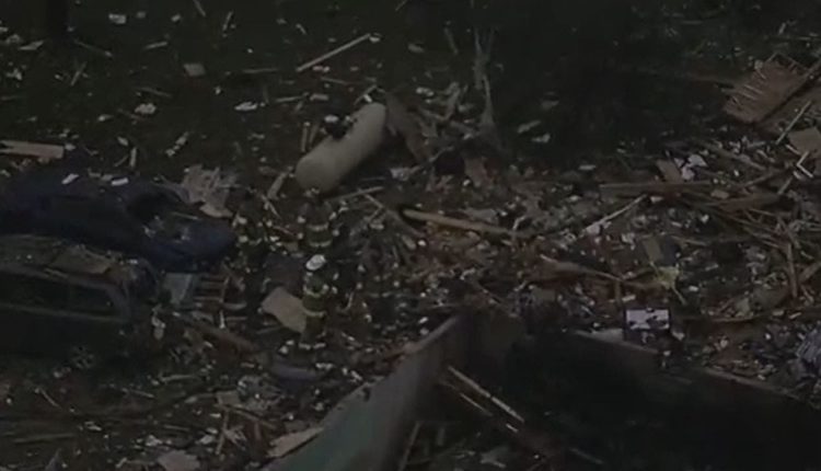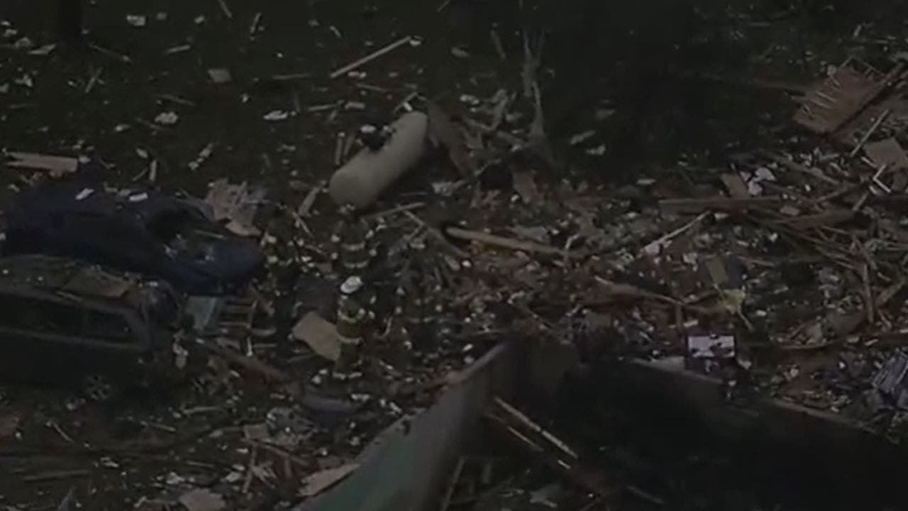 Aerial footage showed multiple fire trucks and emergency vehicles on the scene. Firefighters were seen sorting through debris which was strewn across the property.