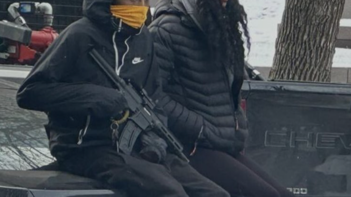 Anti-ICE protester sits on a vehicle holding a gun in Minneapolis pic.twitter.com/V7eBPyjh2c