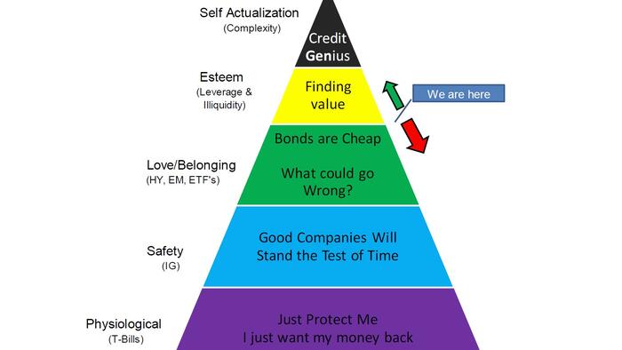 Let’s go back to our “Maslow’s Hierarchy of a Credit Bubble” chart. Yeah, maybe I’ve overused Maslow recently, but that and the Kubler Ross Stages of Grief are really useful.