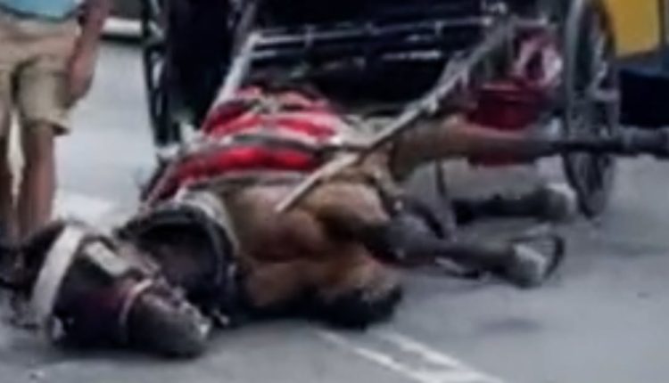 A police officer removed Ryder’s harness and put ice and cold water on the horse for 45 minutes until he was able to stand up, District Attorney Alvin Bragg said in a news release.