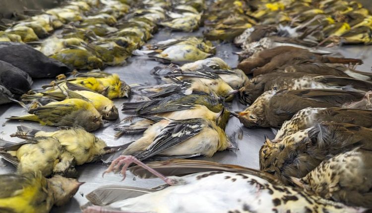 David Willard has been checking the grounds of Chicago’s lakefront exhibition center for dead birds for 40 years. On Thursday morning he found something horrible: Hundreds of dead songbirds, so thick they looked like a carpet.