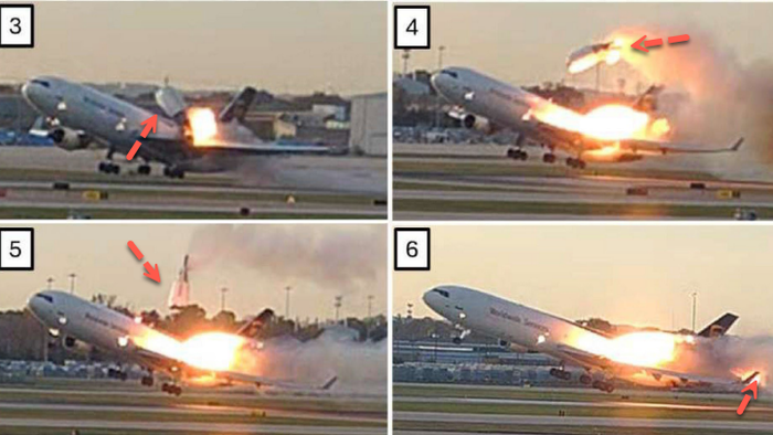 Investigators with the National Transportation Safety Board have released frame-by-frame images showing the left engine of the UPS McDonnell Douglas MD-11F freighter separating from the aircraft during a straight-out departure earlier this month in Louisville, leading to a horrific crash.