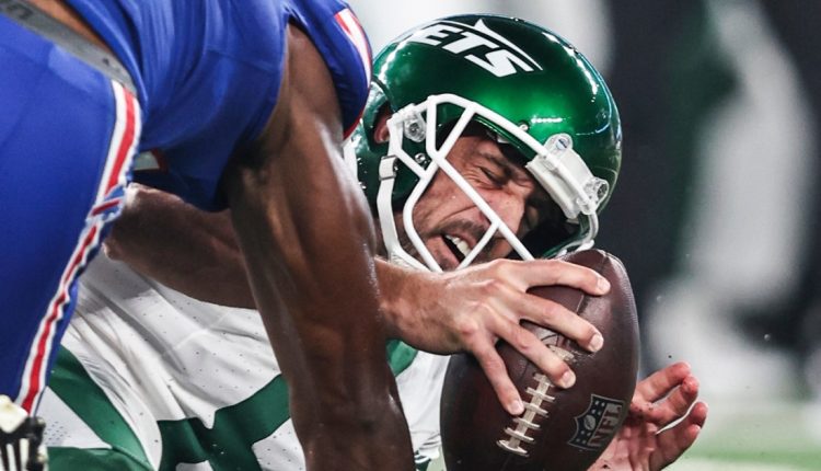 The future Hall of Fame quarterback, whose addition to the Jets was one of football’s most talked-about offseason acquisitions, was helped off the field after a sack by the Bills’ Leonard Floyd.