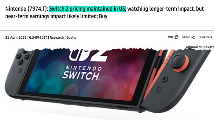 Separately, an overnight report from Bloomberg stated that the demand for Switch 2 in Japan has been “overwhelming.”