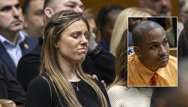 The widow of NYPD officer Jonathan Diller broke down in tears surrounded by a sea of blue in a New York City courtroom as prosecutors gave a graphic description of the bullet that “ripped through” the married father after a man allegedly fired multiple shots at him during a routine traffic stop.