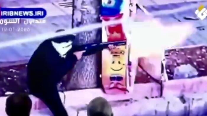 The ambassadors’ Monday matinee coincided with massive pro-government demonstrations in Iran. The presentation included imagery of individuals firing pump-action shotguns and pistols. Other clips showed makeshift barricades on city streets, and groups of people vandalizing cars and flipping them over. There were also multiple apparent examples of arson, including burnt-out buildings, cars and buses. There’s also testimony given by a bloodied man, identified as a law enforcement officer, on a hospital gurney. Asked what he was hit by, he replies:
