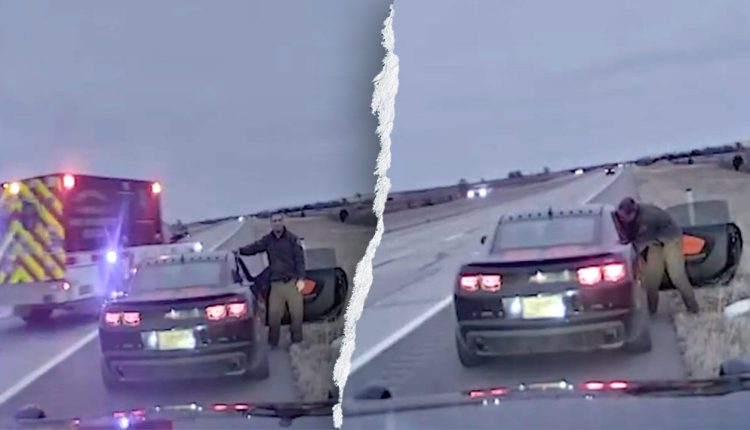 Dashcam video shows Shelby pulling up behind a black Chevrolet Camaro parked on the shoulder with its passenger door wide open and the expectant mother sitting in the front seat.