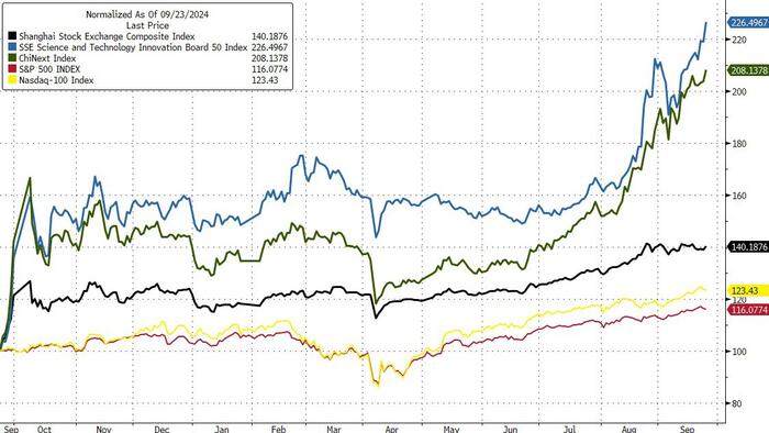 And, as Goldman executive director and trader, Fred Yin writes this morning, China’s momentum clearly has legs – just today, despite the strongest storm on earth so far this year ravaging Hong Kong throughout the day, the equity market remained open and posted solid gains. HSTECH +2.6% surged with internet shares posting solid gains as AI optimism continues to drive sentiment. Furthermore, Goldman’s HK Top Short basket +0.3% only on the day, suggesting short covering had little to do with the move.