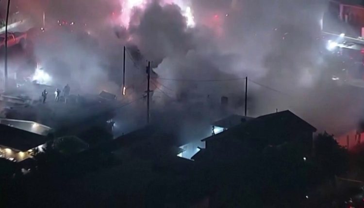 “It was very chaotic,” Los Angeles Fire Department spokesman David Ortiz told Fox 11 LA. “There were fireworks that were exploding, there were power lines that were down, and a large amount of fire department response flooding into the area.”