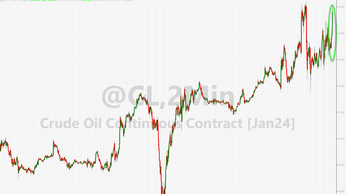 In response Crude rose just over 2% in New York, peaking around $79.5 before reversing some gains.