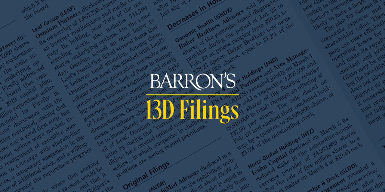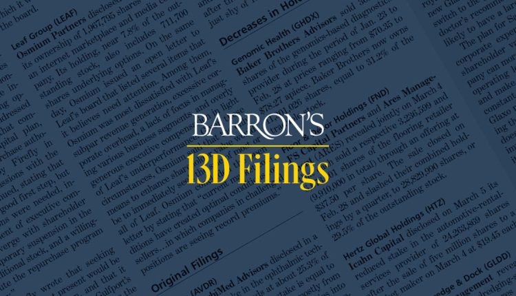 These disclosures are from 13Ds filed with the Securities and Exchange Commission. 13Ds are filed within 10 days of an entity’s attaining more than 5% in any class of a company’s securities. Subsequent changes in holdings or intentions must be reported in amended filings. This material is from Dec. 14 through Dec. 20, 2023. Source: VerityData