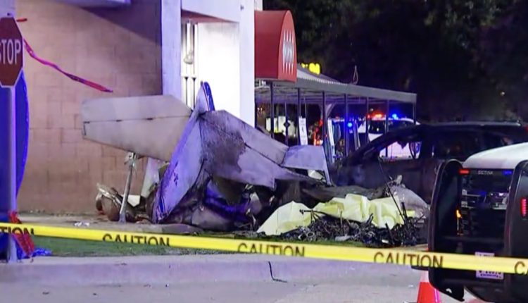 A pilot was killed after a small plane crashed into a shopping center parking lot at a Texas shopping center on Tuesday, authorities said.