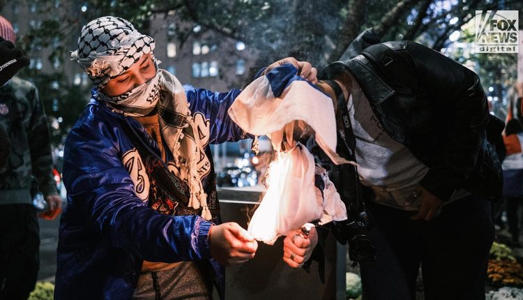 The flag burning followed another incident Thursday, where rioters vandalized an NYPD vehicle by spray-painting “Free Gaza” and other messages.