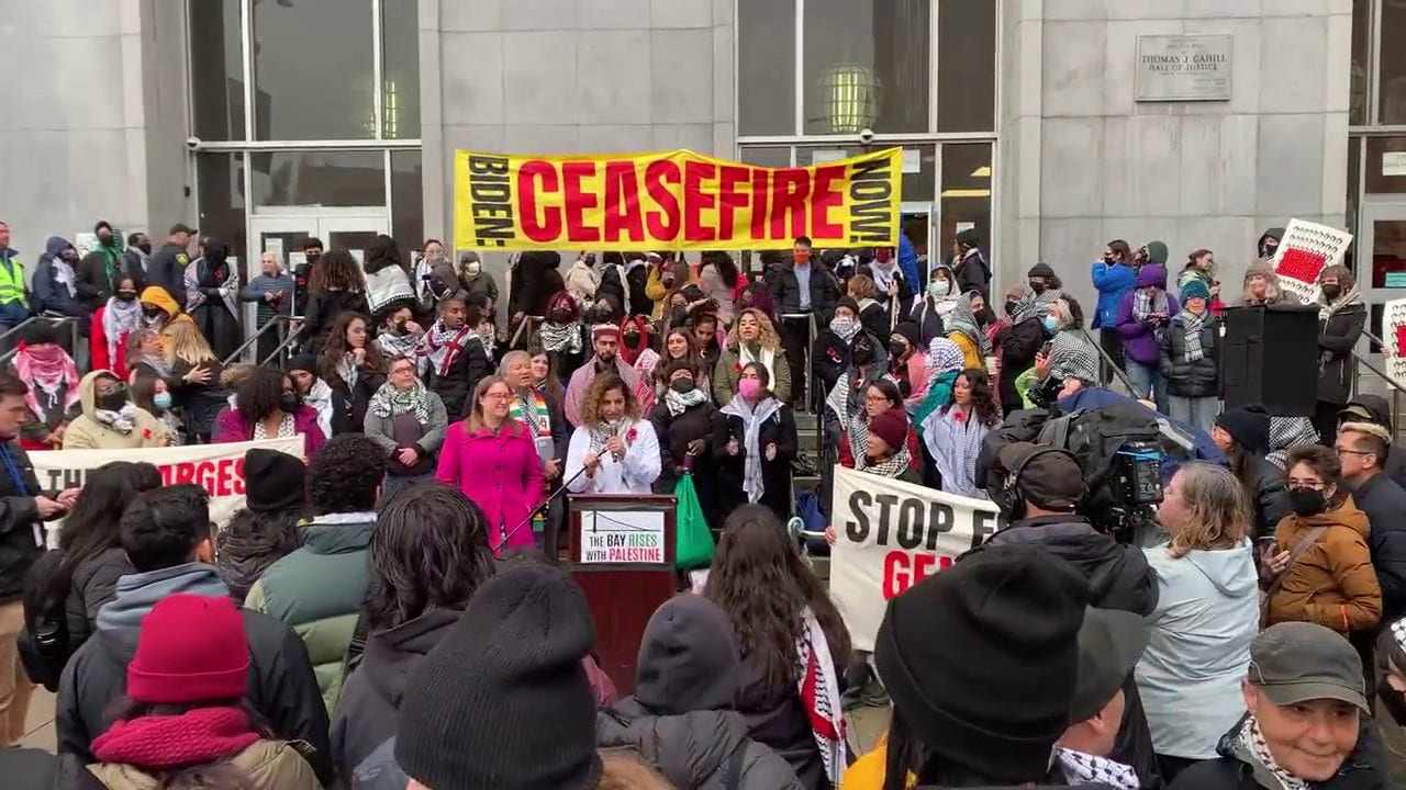 Those who gathered were calling on San Francisco District Attorney Brooke Jenkins to drop the charges against the protesters and for a ceasefire in the Israel-Hamas war.