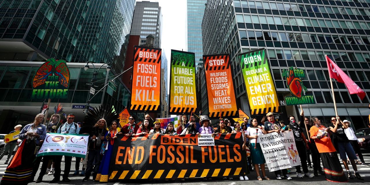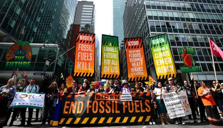 “We hold the power of the people, the power you need to win this election,” said 17-year-old Emma Buretta of Brooklyn of the youth protest group Fridays for Future. “If you want to win in 2024, if you do not want the blood of my generation to be on your hands, end fossil fuels.”