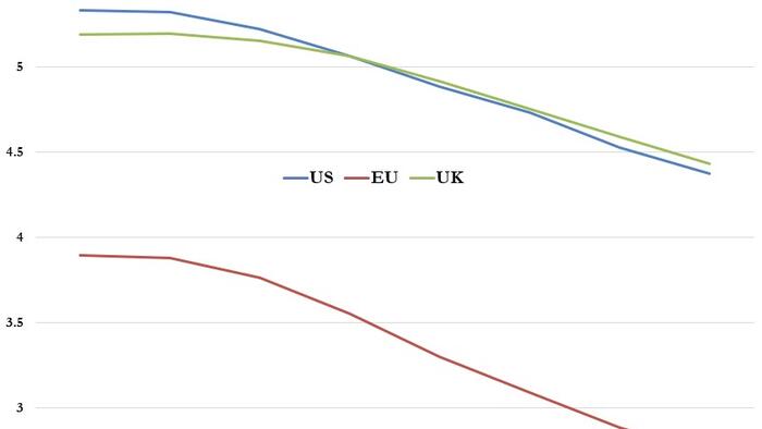 Those are not numbers that suggest the disinflationary process in the UK is clear and well embedded — unlike the case in the US and the euro zone.