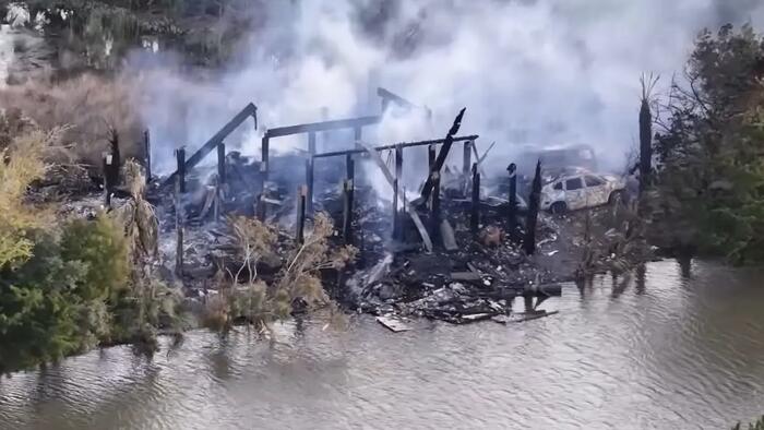 The blaze broke out around midday, forcing Arnold Goodstein to leap from the first floor to escape. He and two others were later rescued from a marshy area behind the house by neighbors and paramedics, who reached them in kayaks, according to the St. Paul’s Fire District.