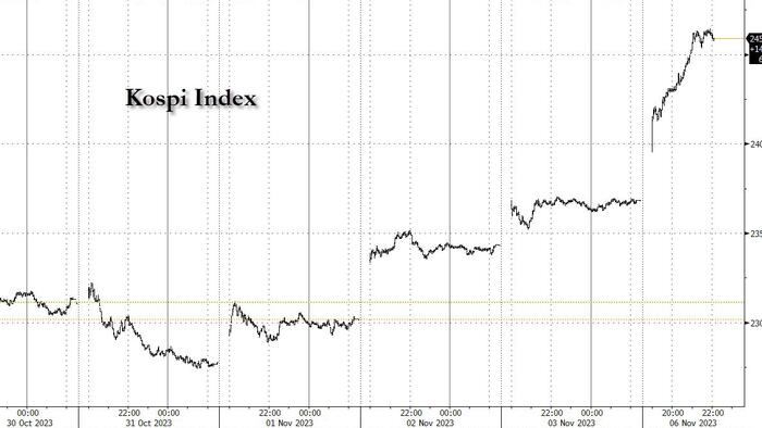 Following news of the ban, the Kospi surged 4%, extending its recent gains.