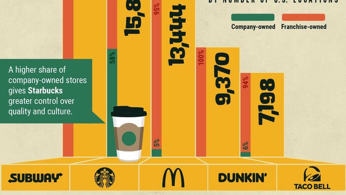 Dunkin’ (dropped the “Donuts” in 2019) and Taco Bell round out the top-five with more than 9,000 and 7,000 locations respectively.