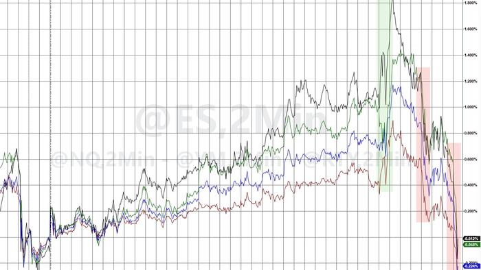 Around 1300ET, stocks legged lower still as Fed’s Waller noted: “LAYOFFS, LOWER HIRING DUE TO AI EXPECTED TO INCREASE“.