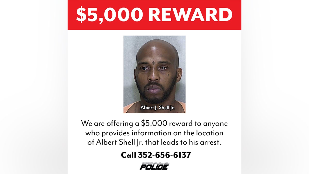Police are asking anyone with information on Shell’s whereabouts to call 352-656-6137 and added that a $5,000 reward is being offered in the lead to his arrest.