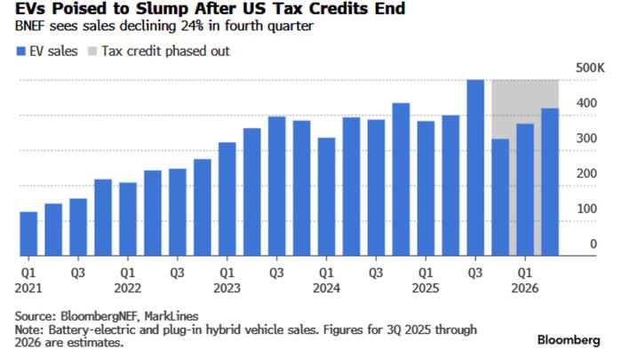 While Tesla just had a record quarter, global sales are down about 6% this year, and analysts expect U.S. EV sales to fall sharply after the credit’s removal. Recall, about a week ago the company reported stronger-than-expected third-quarter delivery figures. Deliveries came in at 497,099 vehicles, a 7.4% increase from a year earlier and smashing Bloomberg consensus estimates of 439,612. The numbers also beat the recently-boosted guidance from Goldman and UBS.