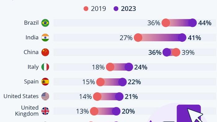 Among Europeans, Italians were most “under the influence”, at 24 percent saying in 2023 that they had made a purchase because a celebrity or influencer advertised the product.