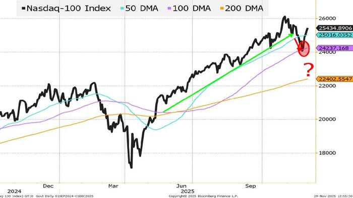 • The Nasdaq 100 is up 5.7% (outpacing the “rotation” trade of the S&P 500 Equal Weight which is up 3% in those same trading days).