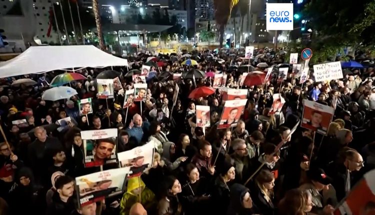 Chanting and singing songs of “We won’t stop”, and calling for “elections now.”, demanding government action to bring the hostages home.