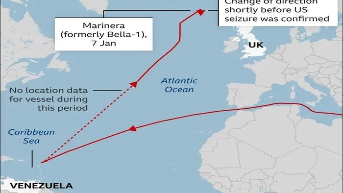 The Russian-flagged Marinera tanker was just seized by the US in the Atlantic. It was earlier named the Bella 1 and is under US sanctions due to connections to Hezbollah. It sailed under the Guyanese flag from Iran to Venezuela and attempted to break the US’ blockade. It failed, turned around, changed its name to the Marinera, and received a temporary permit to sail under the Russian flag before being seized. Russian then demanded that its citizens on board be treated humanely and returned home.