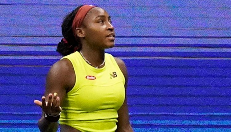 Play between Coco Gauff and Karolína Muchová during a U.S. Open match was stopped Thursday after an environmental protester “glued his feet to the cement floor,” an announcer said.
