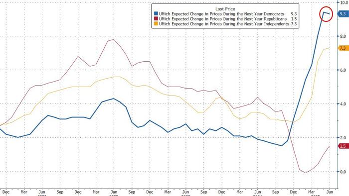 Following this morning’s very modest rise in Core PCE (coming just a couple of weeks after CPI disappointed the Trump Tariff infation fear-mongers once again) and a month since the UMich survey found that “Women, Democrats, & Low-Income Americans Are Out Of Their TDS-Addled Minds”, and one week after Goldman finally called out the idiocy of the UMich survey, slamming its “partisanship” and the “sample design break starting from June 2024“…