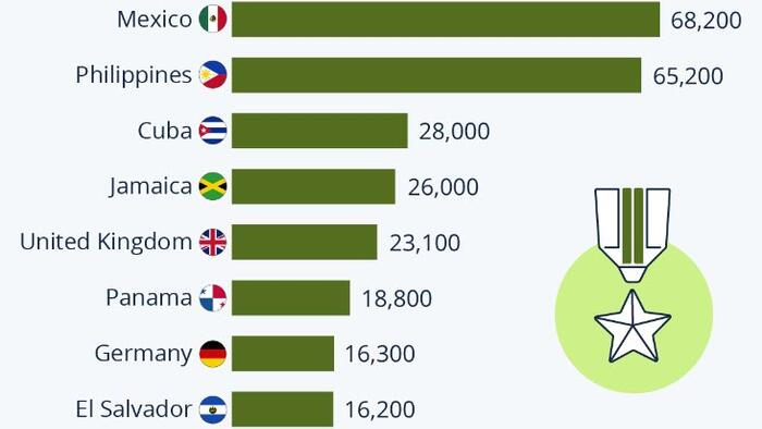 As Statista’s Katharina Buchholz reports, among the foreign-born ex-recruits, natives of Mexico and the Philippines are by far the biggest groups, according to the U.S.-based survey.